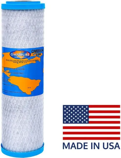 Φίλτρο νερού ενεργού, συμπαγούς άνθρακα (block) OMB 934 1M-Lead. Εξαιρετικής ποιότητας ενεργός (φαρμακευτικός) άνθρακας από κέλυφος καρύδας (coconut shell) με ονομαστική δυνατότητα φίλτρανσης 0.5 μικρών. Επιπλέον, η ειδική ρητίνη που εμπεριέχει το φυσίγγιο, αφαιρεί βαρέα μέταλλα, όπως μόλυβδο, κτλ.